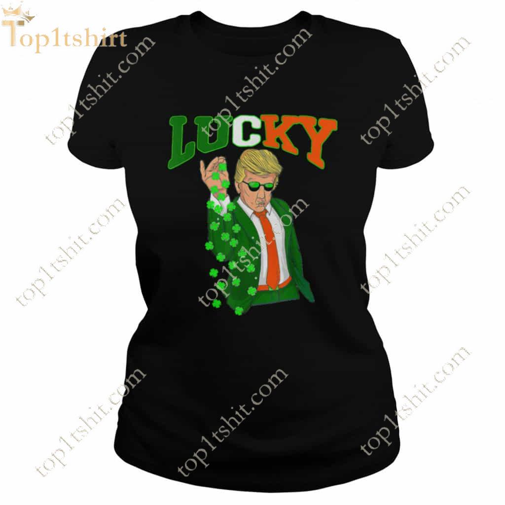 - Design: Featuring a humorous caricature of Donald Trump, decked out in St. Patrick's Day attire, the shirt is sure to catch eyes and spark smiles. The vibrant green hues and playful graphics make it an ideal choice for St. Patrick’s Day parades or parties.