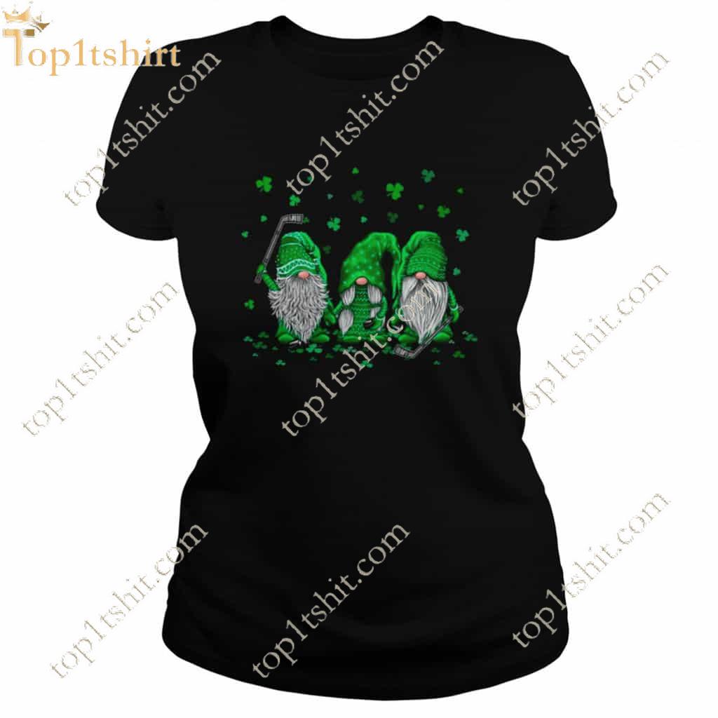 Gnomes have always been associated with whimsy and charm, and this shirt takes that to a whole new level. Picture adorable gnomes playing hockey, complete with miniature sticks and pucks. It's a playful and unexpected twist that adds humor and uniqueness to your St. Patrick's Day attire.