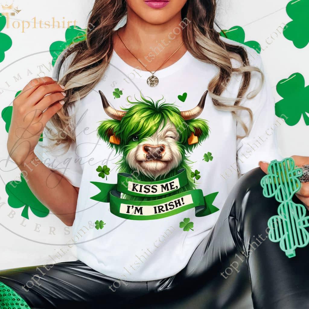 Design: The Green Cow T-Shirt features a cheerful cow wearing a leprechaun hat and sporting a mischievous grin, accompanied by the classic St. Patrick's Day slogan "Kiss Me I'm Irish." The vibrant green color of the shirt captures the spirit of the holiday, while the adorable cow motif adds a touch of whimsy and humor. Whether you're Irish or just Irish-at-heart, this charming tee is sure to bring a smile to your face.