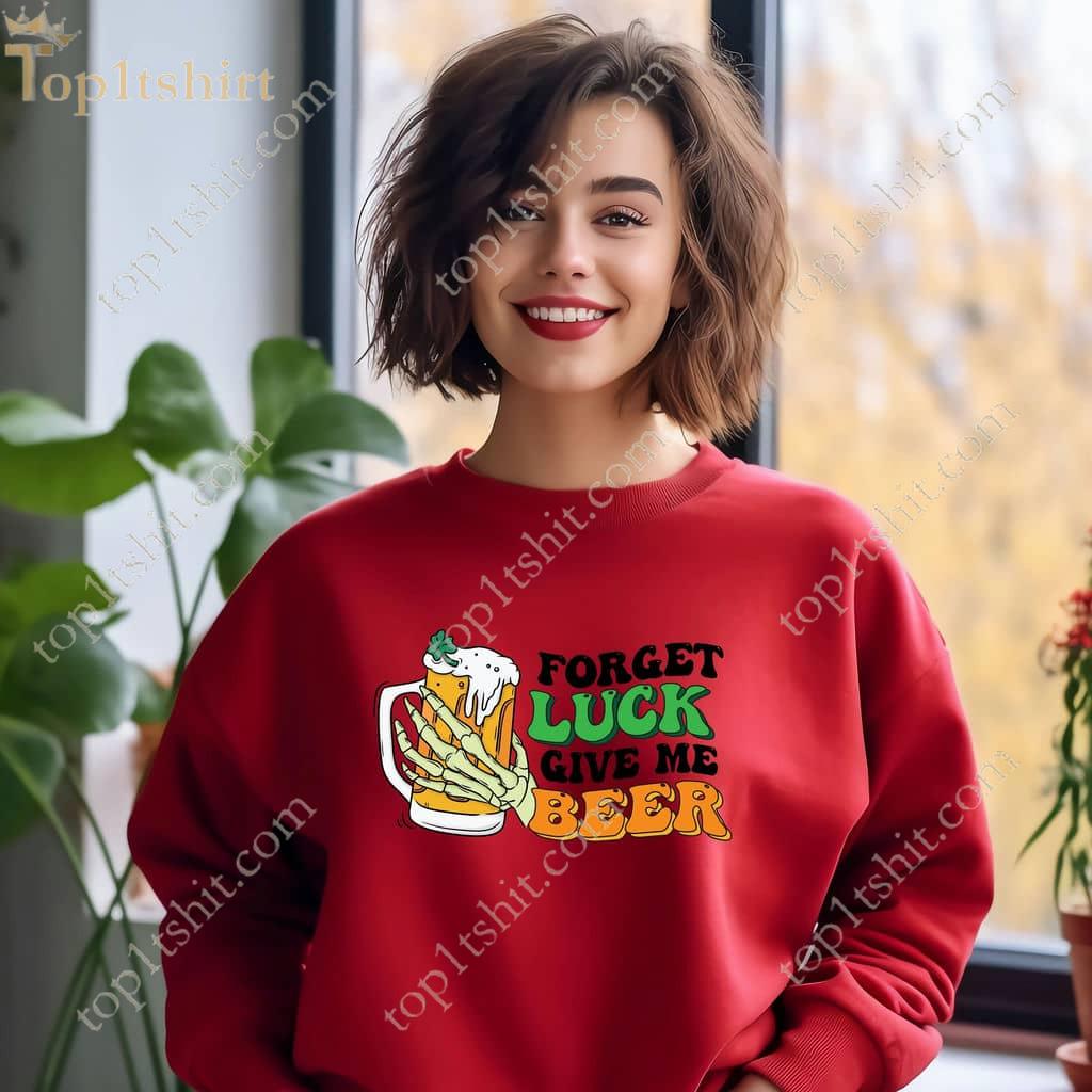 St. Patrick’s Day Skeleton Beer Sweatshirt, Forget Luck And Give Me Beer